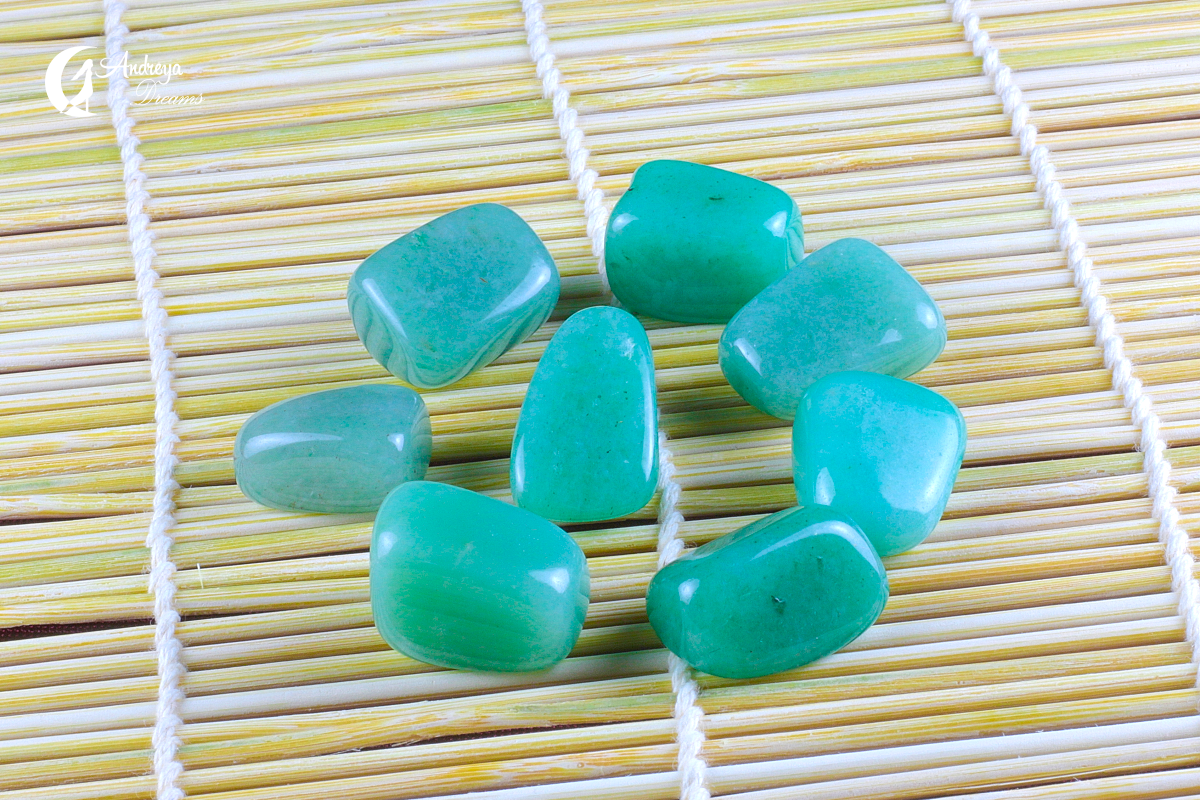 A Aventurina Verde diminui perturbações psicossomáticas e medos. Tem um efeito calmante, trazendo alegria e levantando a moral da pessoa.