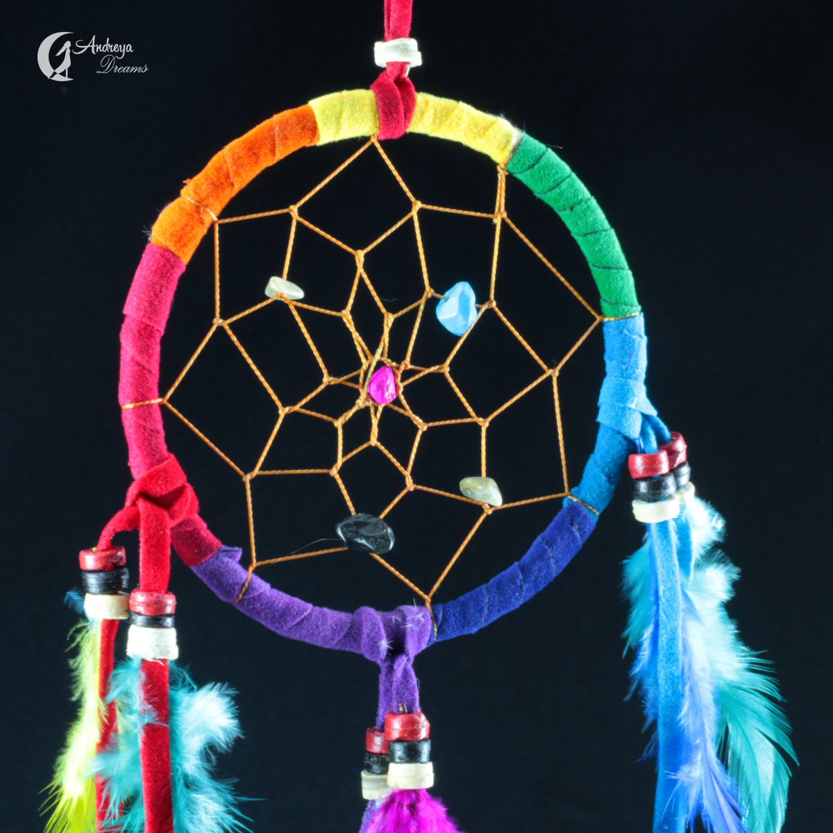 Caça Sonhos médio com design Arco-Irís, feito manualmente em Bali.