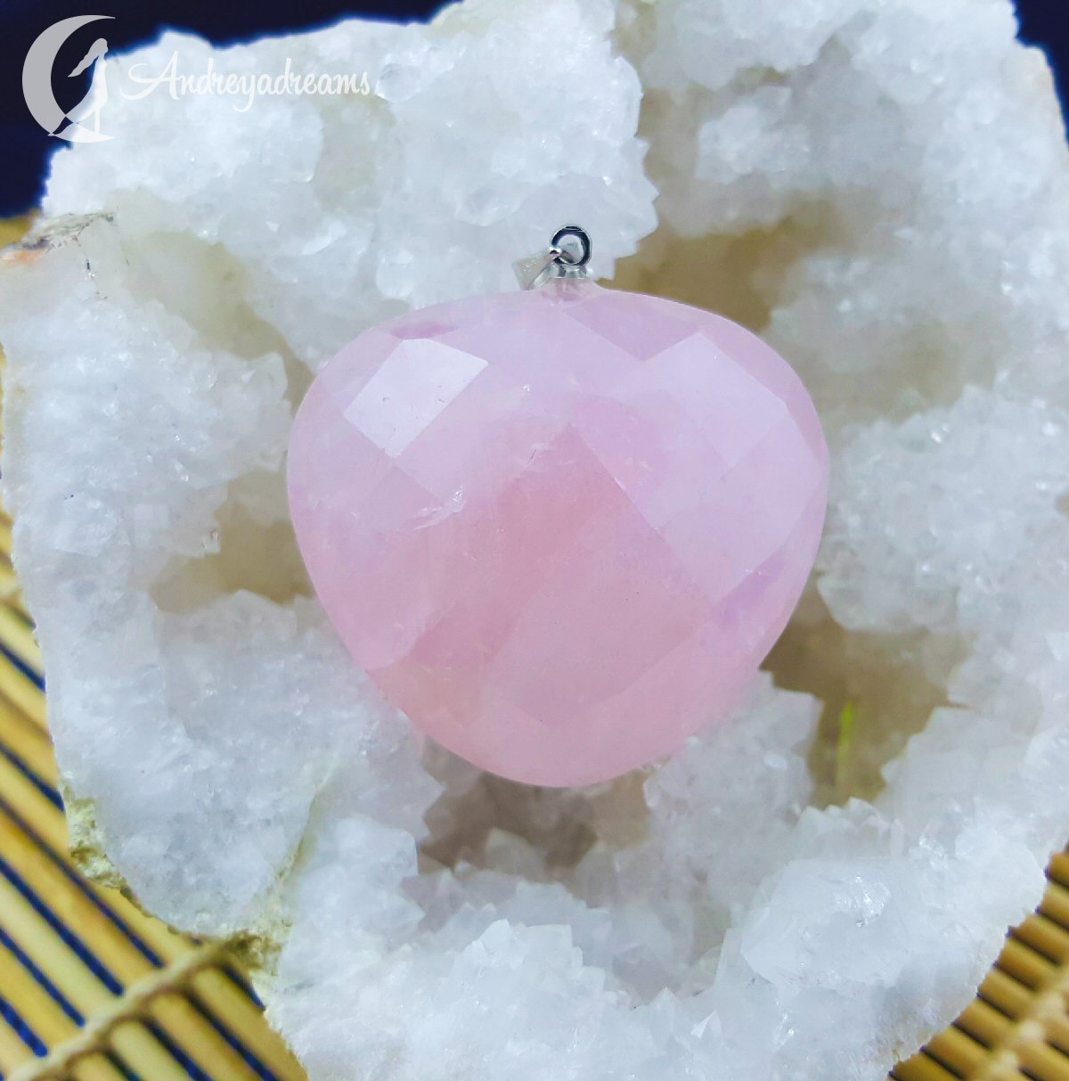 Pendente em forma de coração de Quartzo Rosa.