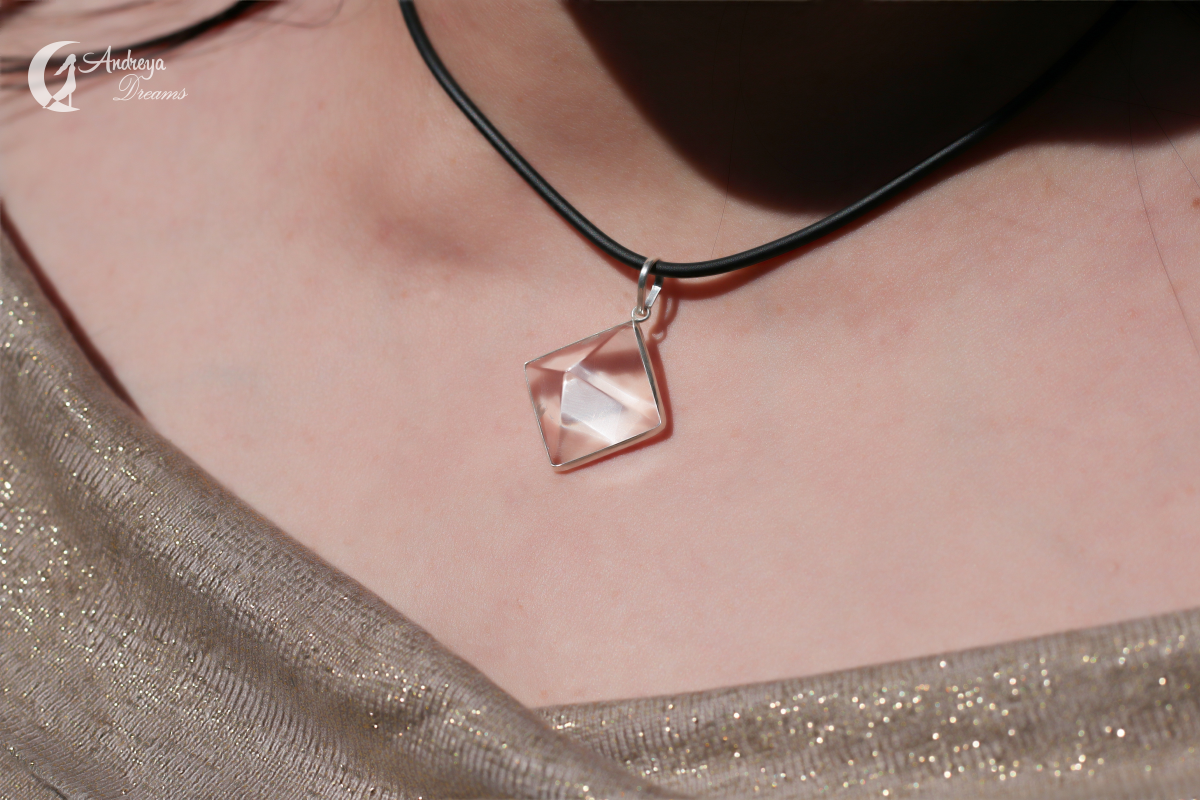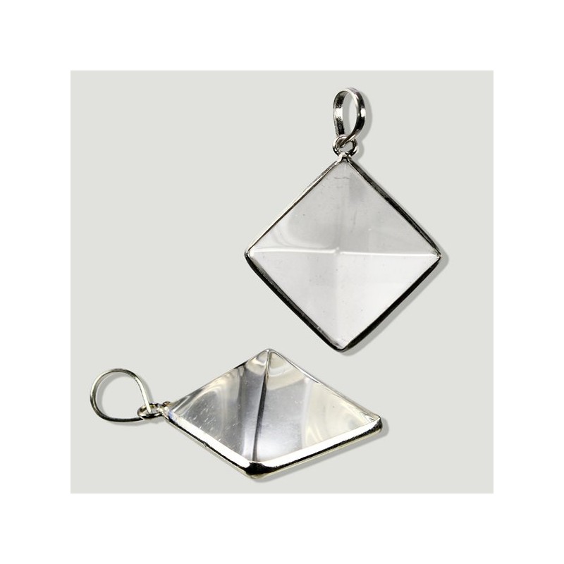 Pendente Pirâmide de Quartzo Cristal e Prata