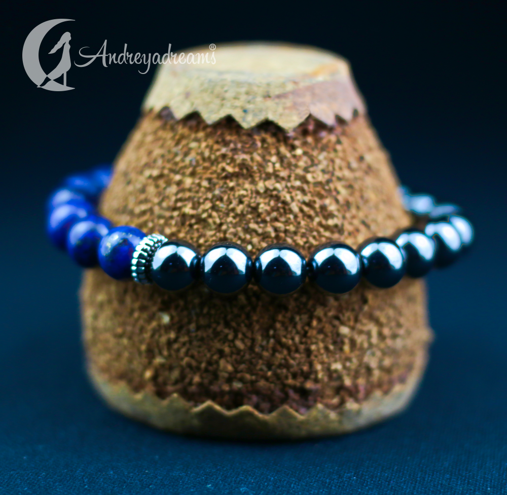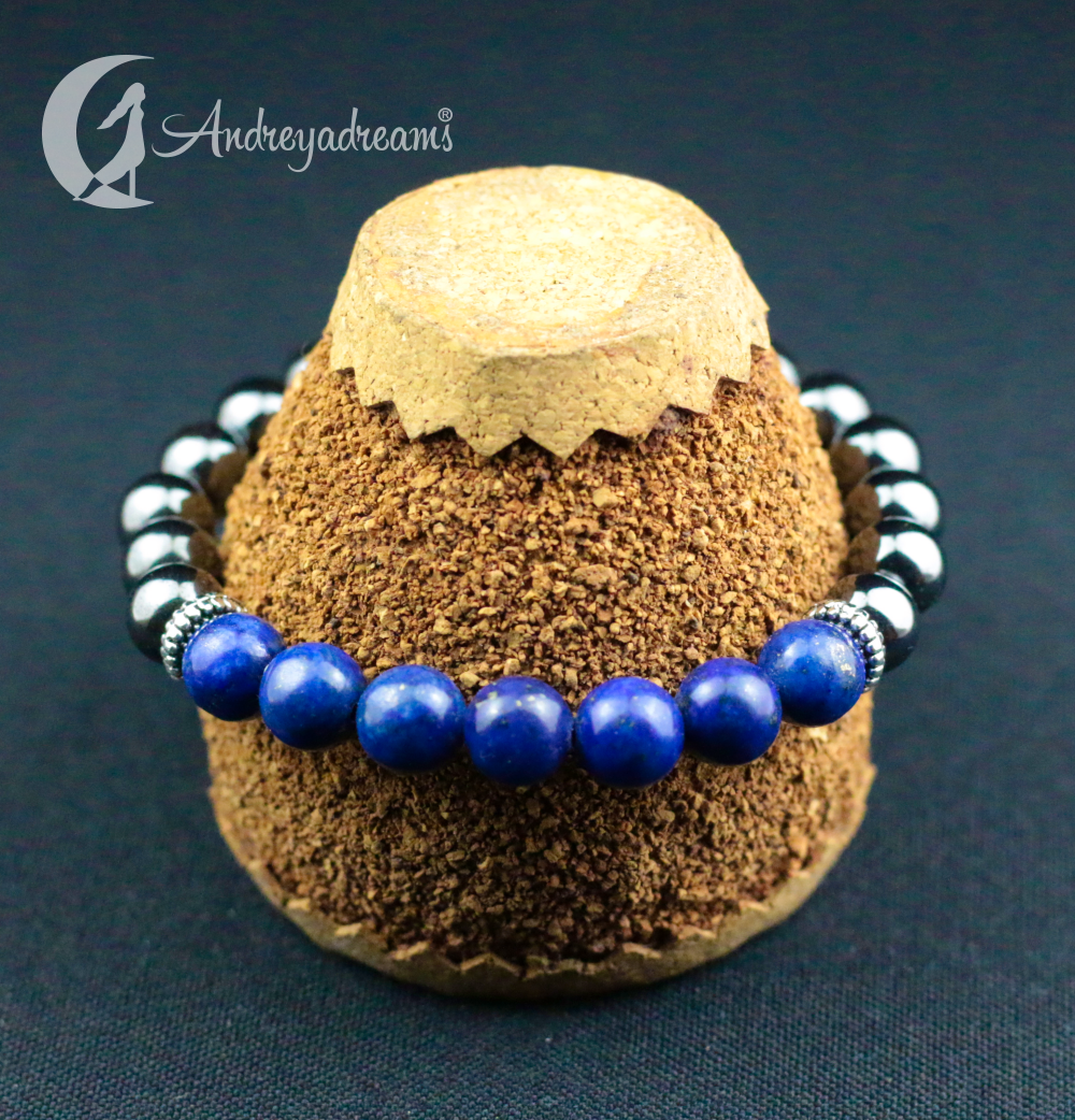 Com esta magnífica pulseira de pedras Hematitie e Lápis Lazuli, deixará maravilhada a quem a mostrar. A sua beleza e elegância, fazem dela uma pulseira única.